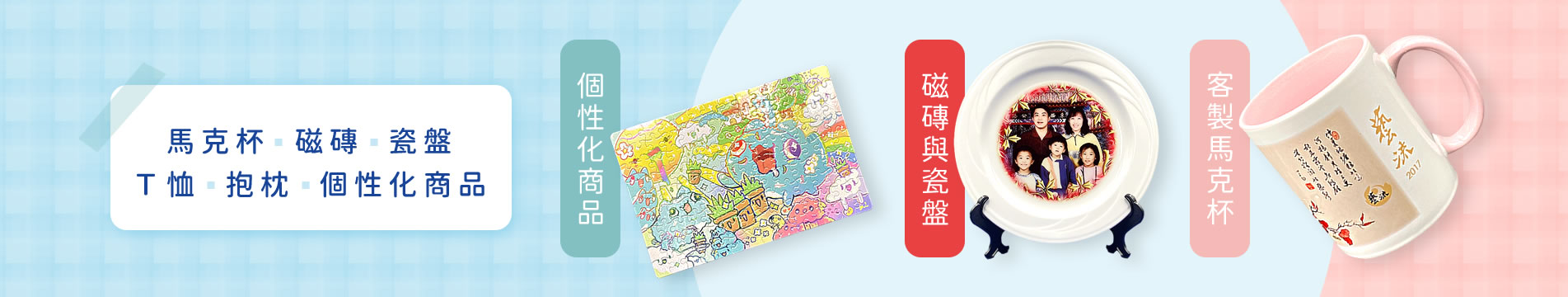 熱轉印:無版印刷,不需要製作模板,電腦上能呈現的文字與圖案,皆可於熱轉印呈現,適合應用在客製化商品上。